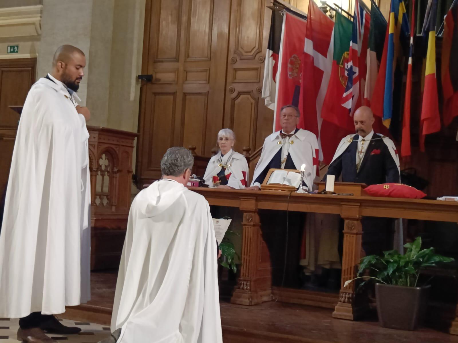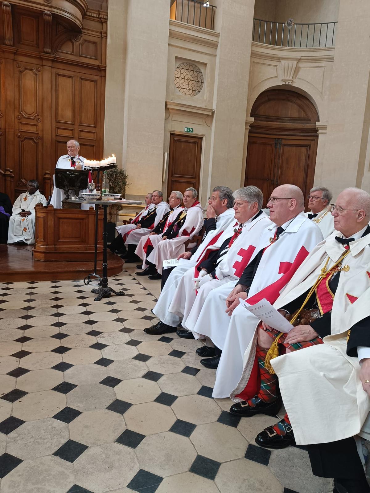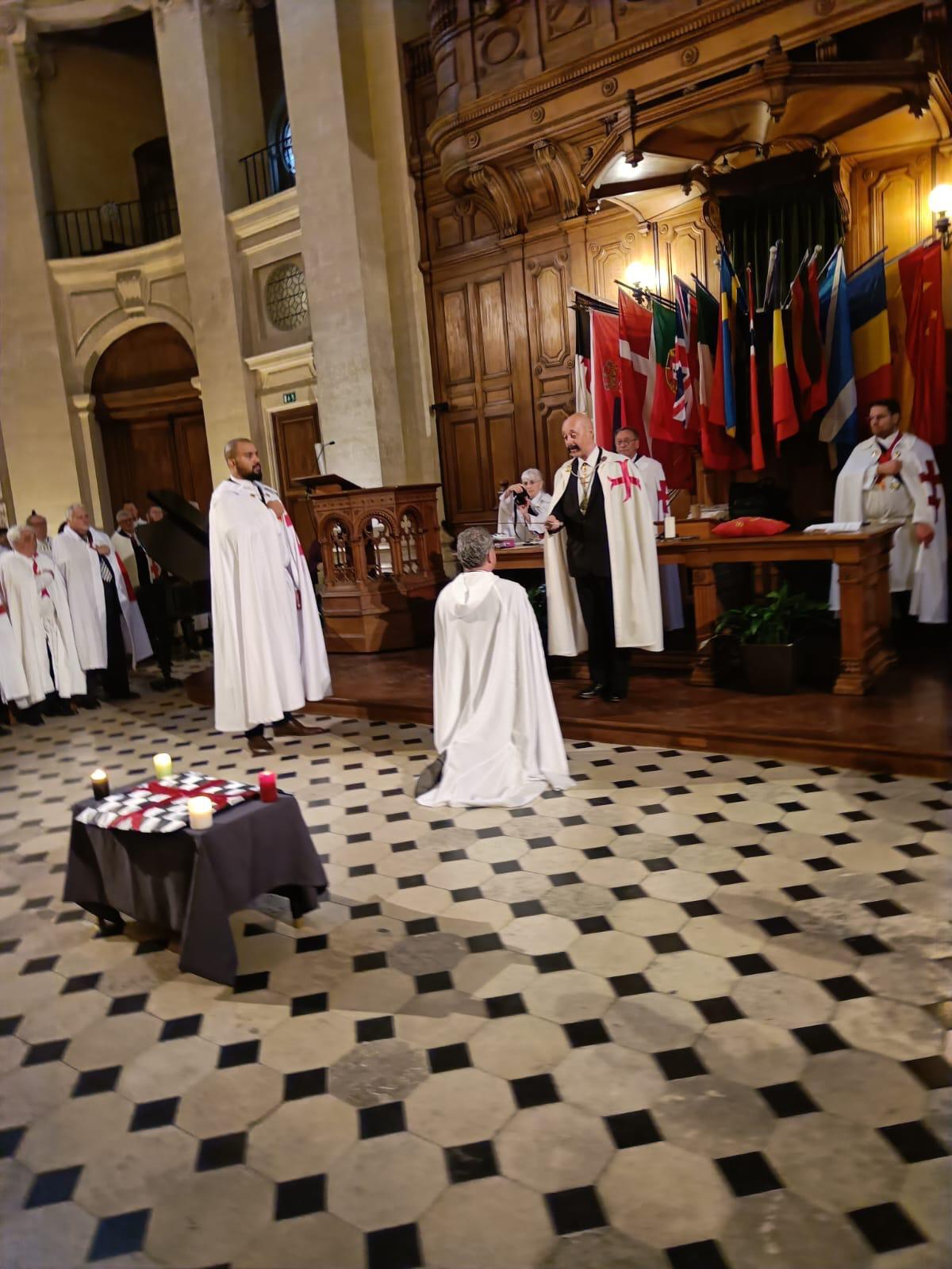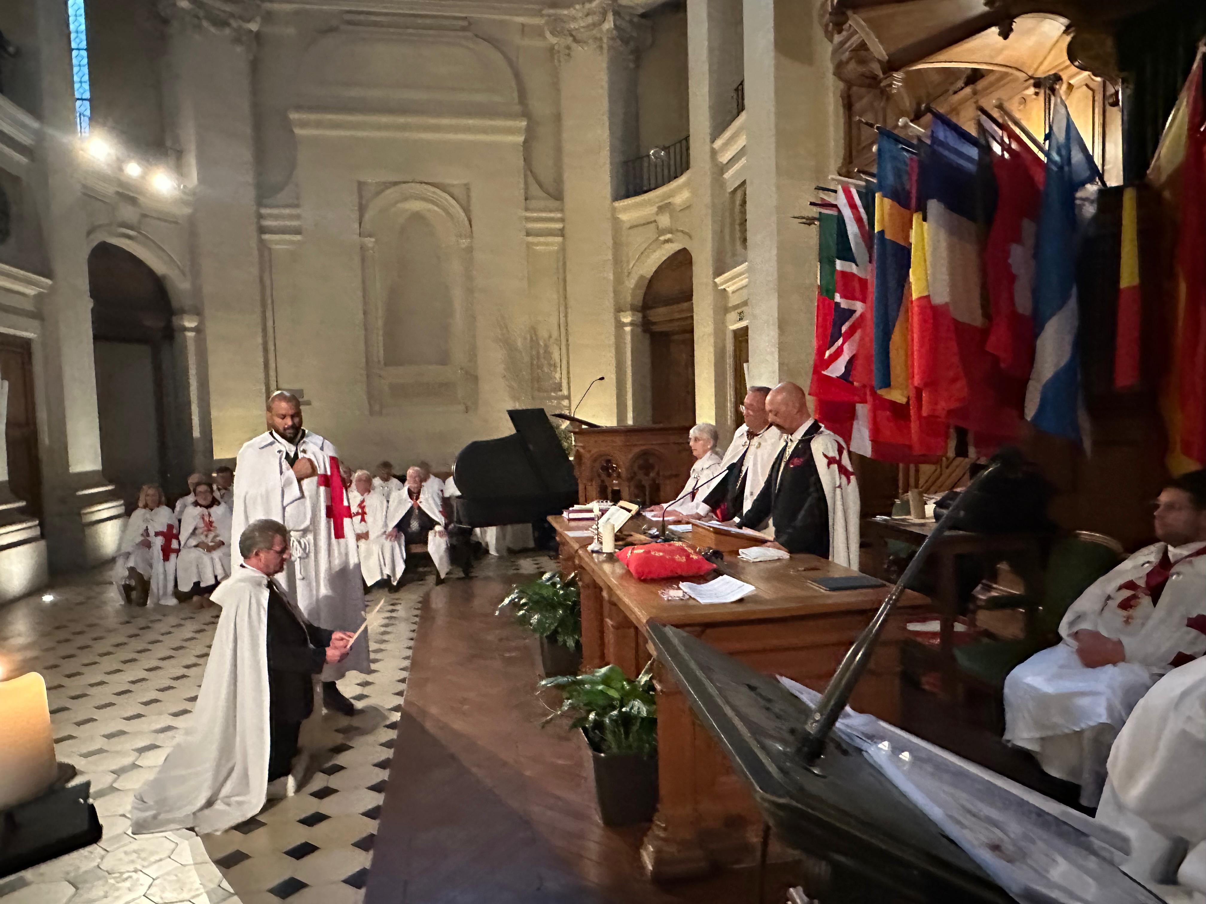 Am Nachmittag fand in der Pfingstkirche der Gottesdienst mit Investituren und als Höhepunkt für unser Großpriorat die offizielle Amtseinführung des deutschen Großpriors statt. Den schönen Abschluss des Tages krönte das Galadinner im Militärzentrum in Paris.