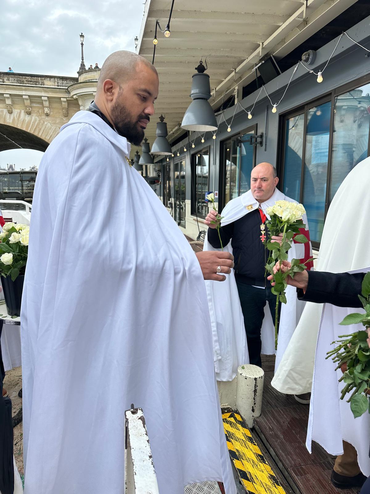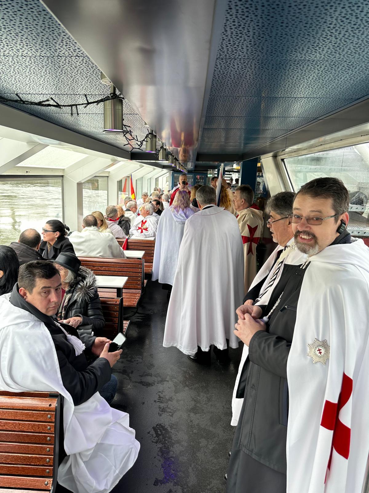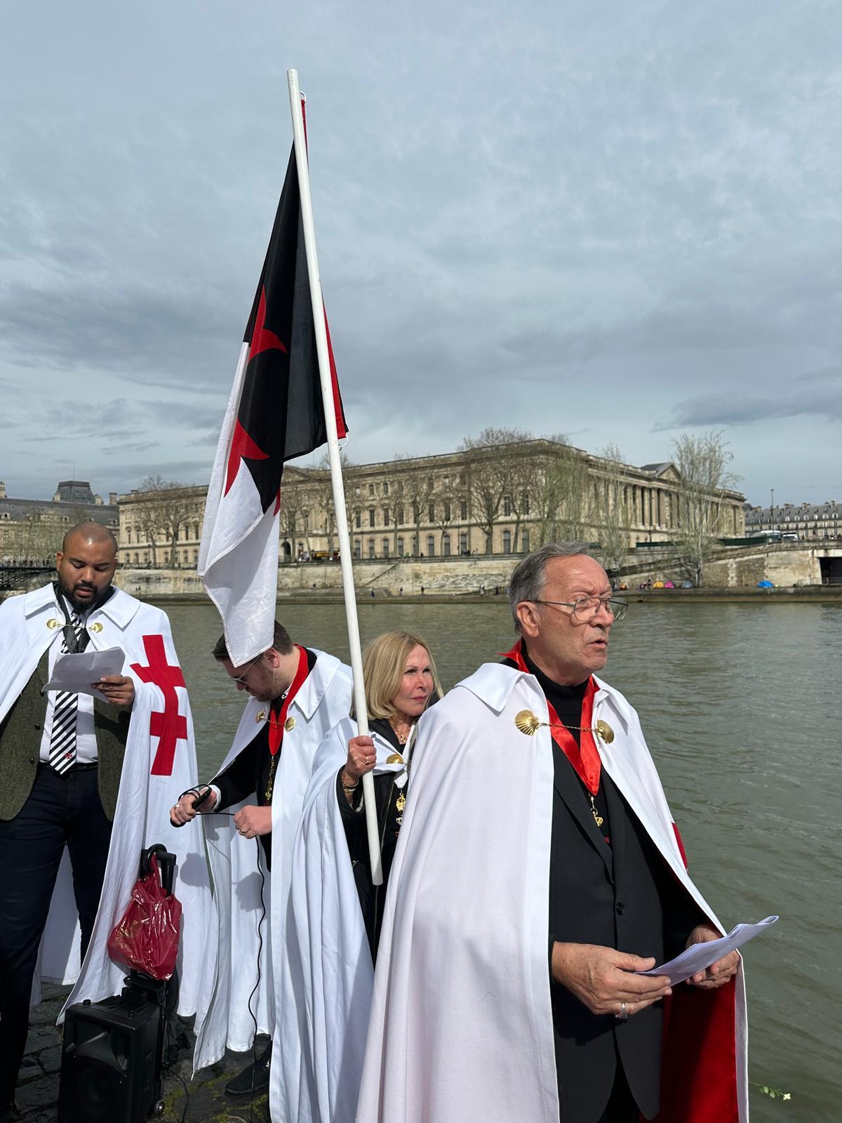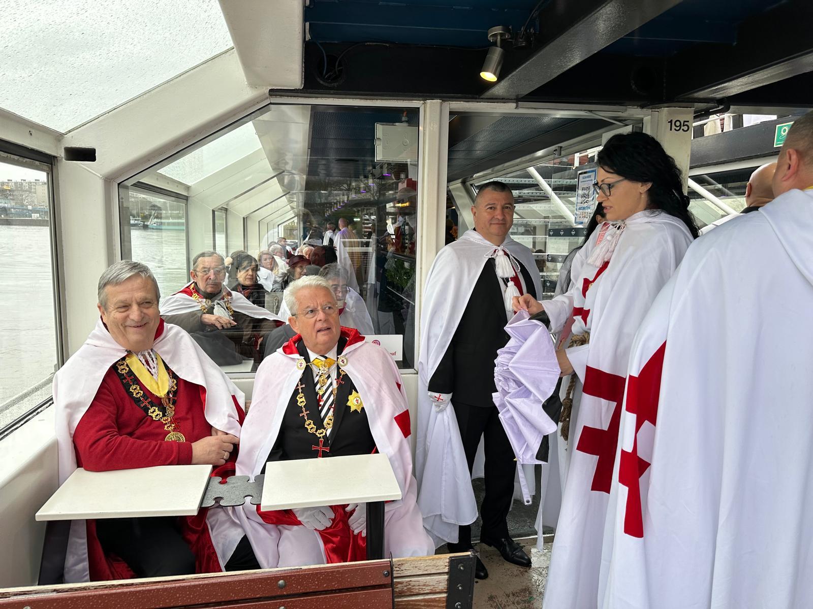 Das Kapitel in Paris war gut besucht. Die Teilnehmer der deutschen Delegation waren SE Cosmin-Andrei Todorut EMC, magistraler Großprior von Deutschland und SE Reinhard Latza EMC, Prior West. Die Veranstaltung über den gesamten Samstag begann in traditioneller Weise mit der Schiffahrt vom Hotel zur Todesstätte des Großmeisters Jaques de Molay. Auf der Île de la Cité fand dann die entsprechende Gedenkfeier statt. Die Zeremonie auf der Seine Insel endete damit das zum Gedenken an die Märtyrer des Ordens weiße Rosen in den Fluss übergeben wurden.