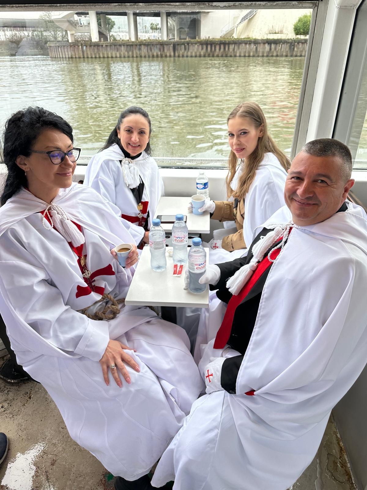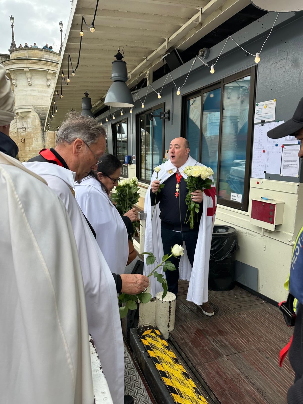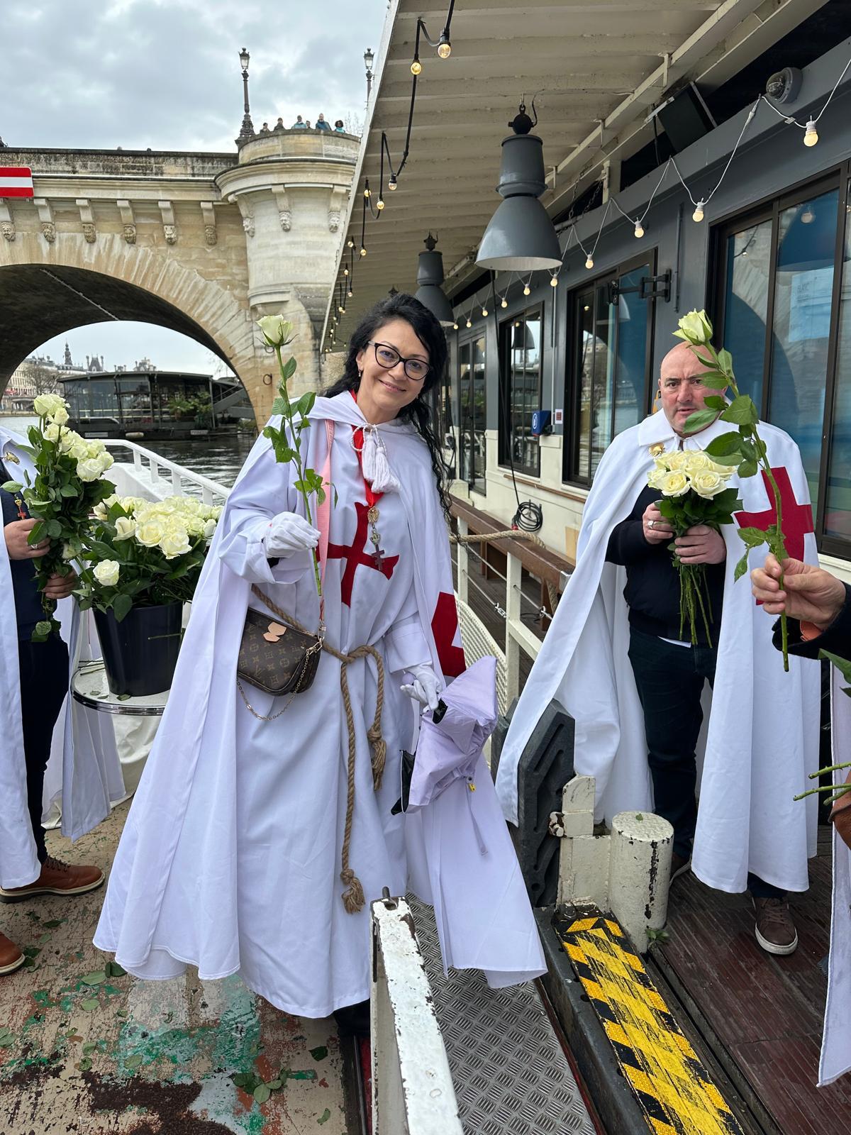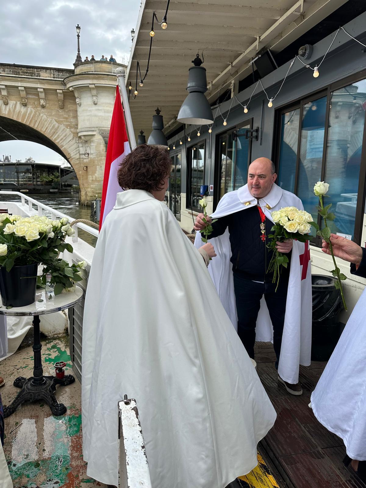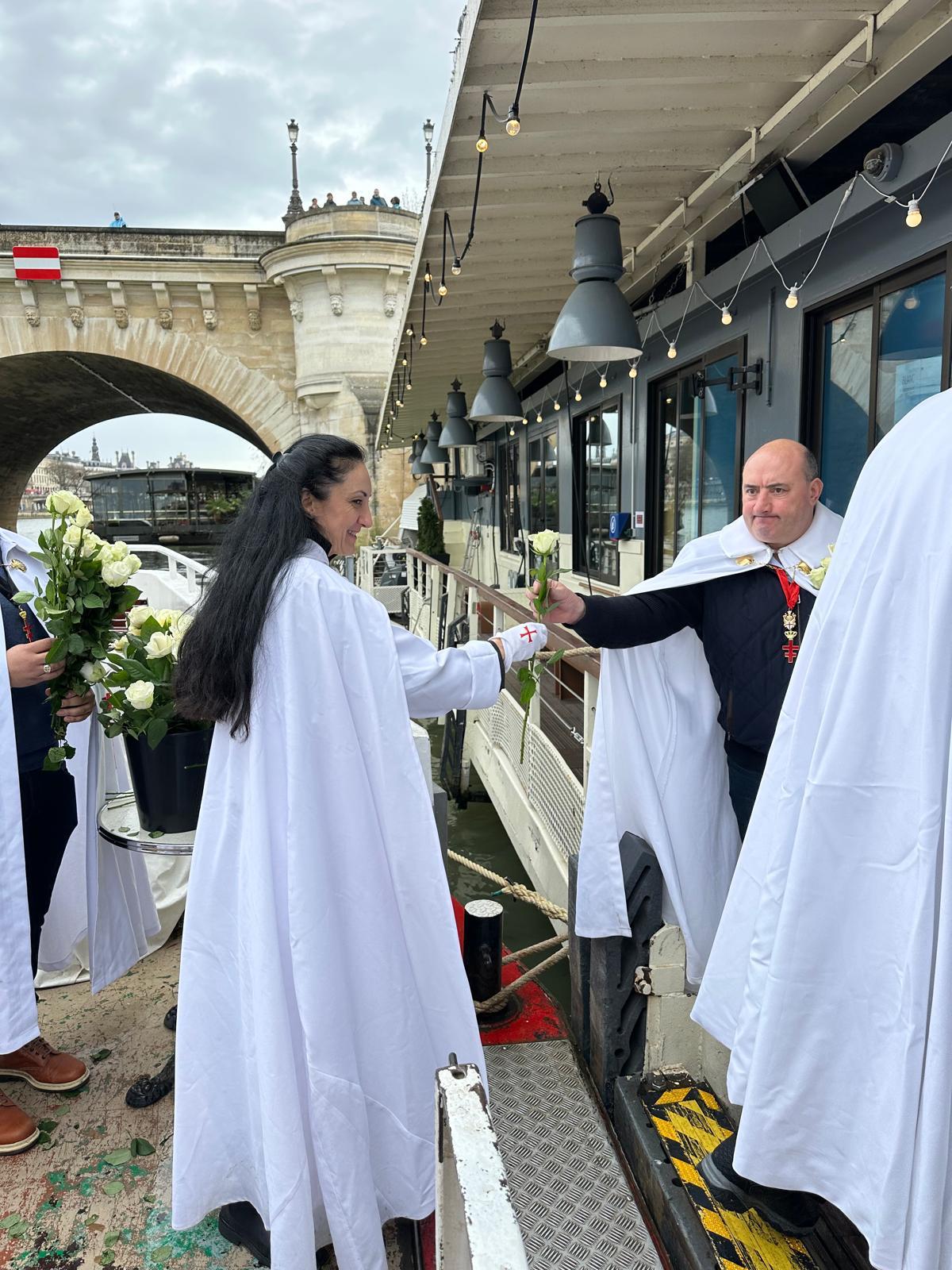 Das Kapitel in Paris war gut besucht. Die Teilnehmer der deutschen Delegation waren SE Cosmin-Andrei Todorut EMC, magistraler Großprior von Deutschland und SE Reinhard Latza EMC, Prior West. Die Veranstaltung über den gesamten Samstag begann in traditioneller Weise mit der Schiffahrt vom Hotel zur Todesstätte des Großmeisters Jaques de Molay. Auf der Île de la Cité fand dann die entsprechende Gedenkfeier statt. Die Zeremonie auf der Seine Insel endete damit das zum Gedenken an die Märtyrer des Ordens weiße Rosen in den Fluss übergeben wurden.