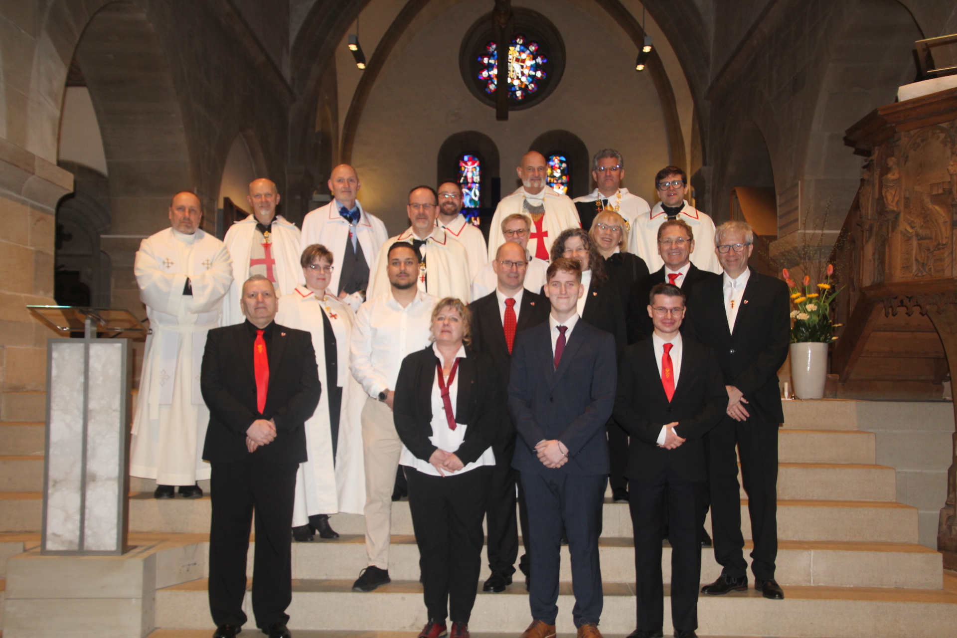 Die beiden Komtureien Hugues des Payns und St. Bernhard von Clairvaux richteten am Samstag, 29.03.2025 in der Evangelischen Klosterkirche in Denkendorf eine gemeinsame Weihe aus, um die Aufnahme von Postulanten sowie Knappenweihen durchzuführen.